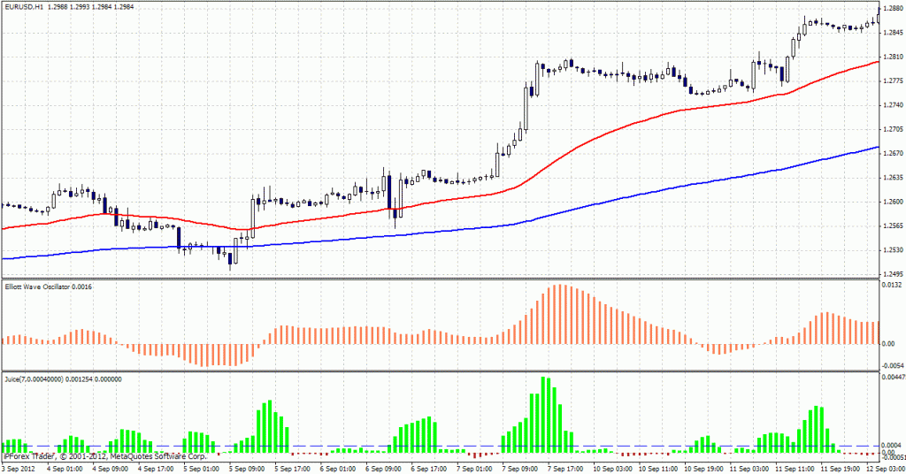 last column of the histogram indicator Juice closed above its level of 0.0004.